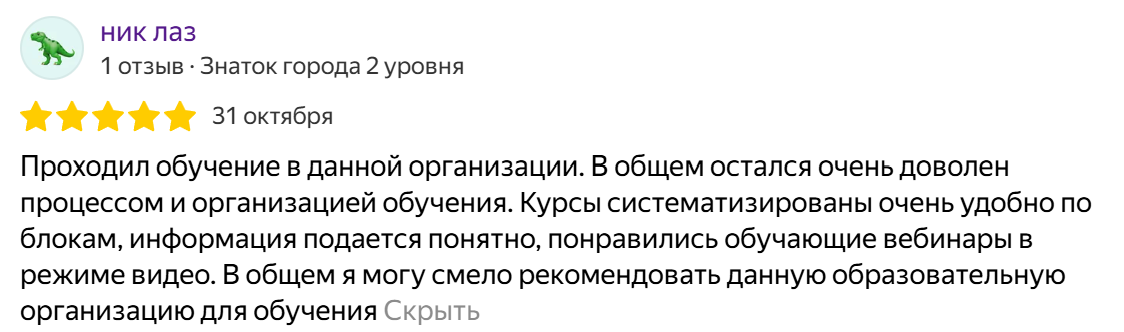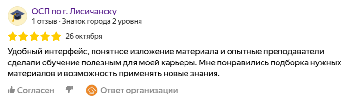Будьте уверены в профессионализме организации, в которой Вы собираетесь обучаться. Сертификат подтверждает наличие помещений, оборудования, преподавателей, а также опыта оказания услуг и положительных отзывов клиентов.