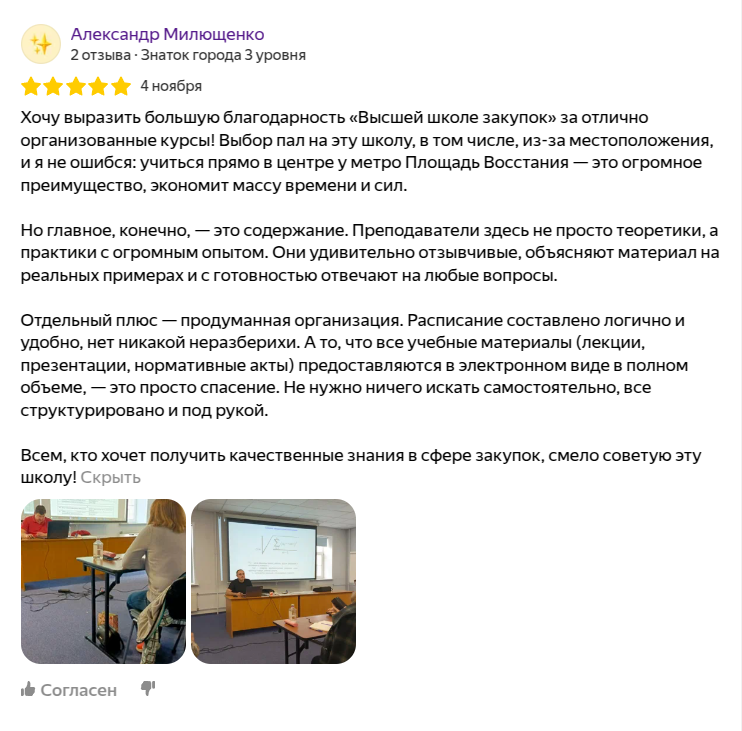 Конечно, обучение в Высшей школе закупок основано на принципе “от простого – к сложному”. Каждая программа обучения, ориентирована на изучения курса с нуля и до определенного уровня.