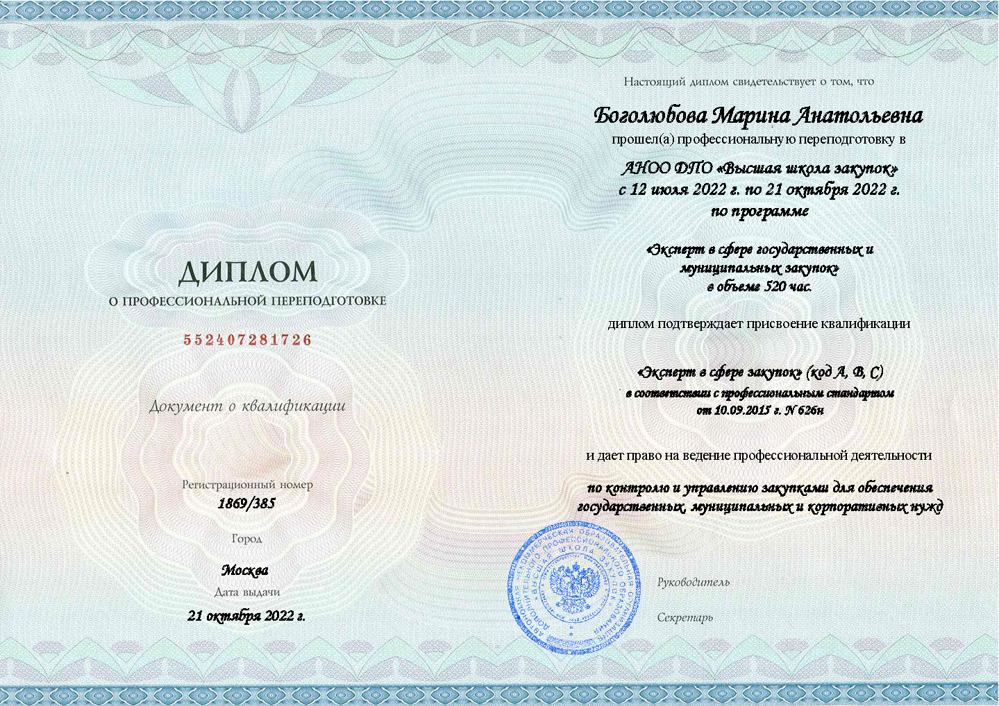 Профессиональная переподготовка (для специалистов контрактных служб и комиссий) – от 250 часов (1,5–6 месяцев).